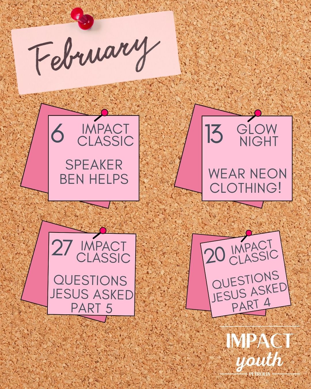 If you are in Grades 9-12, you are invited to join us every Friday for a night of games, hanging out, and discussing topics about life and faith.